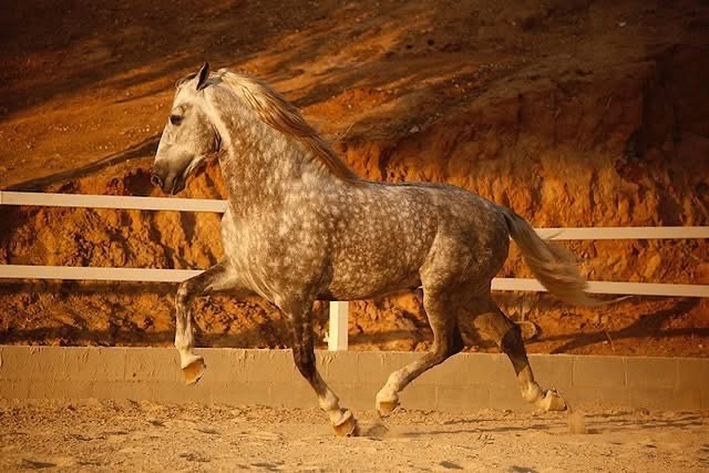 His silver coat shimmers in the sunlight, a reflection of his refined lineage and disciplined training. Calm yet courageous, he moves with purpose; equally at home in the arena or leading the herd. More than a horse, he is a symbol of endurance, intelligence, and natural beauty passed down through generations.